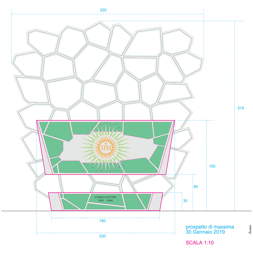 El tema solicitado para este proyecto era muy particular y conmovedor porque no se limitaba al diseño y construcción de la tumba de San Carlo Acutis, sino que se trataba sobre todo de crear un espacio, un lugar para "respirar" y contemplar el misterio de la figura de un joven que en su corta vida había captado la belleza de la santidad.