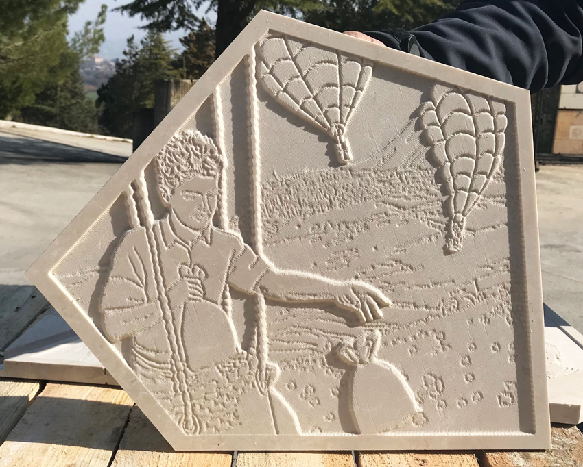 En la sacralidad del Santuario de la Spogliazione, la inspiración surgió casi espontáneamente: transmitir la sensación del cuerpo de Carlo ascendiendo al Cielo a pesar del uso de materiales pesados como la piedra. Así, la lágrima del sarcófago, al desprenderse del suelo, parece elevarse con su forma trapezoidal, acentuando aún más este efecto de suspensión y ligereza en el ascenso.